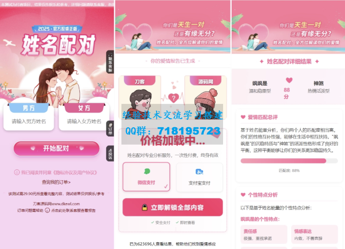 2025姓名配对测算配对系统七天情侣PHP源码带后台