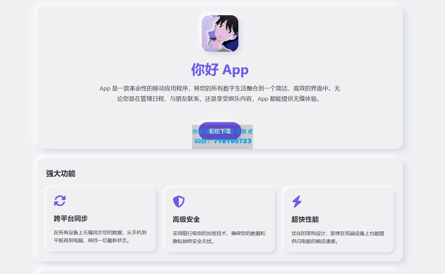简约漂亮的APP下载页源码前端采用HTML+CSS拟态风格,无后台,首页内容有专门的配置文件在根目录,可直接配置页面内的全部信息,自适应手机/电脑端测试环境:HTML......