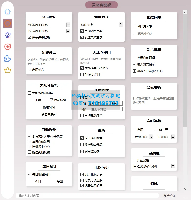 整合弹幕姬+答谢姬+点歌姬+回复姬+多种大模型AI+工作流(workflow),支持弹幕聊天、观众互动与管理、数据统计与分析、自动点歌、私信处理、AI自动闲聊、AI直播建议等。最大的特点是可编程控制,像搭积木一样设置各种互动规则,打造专属直播风格!
