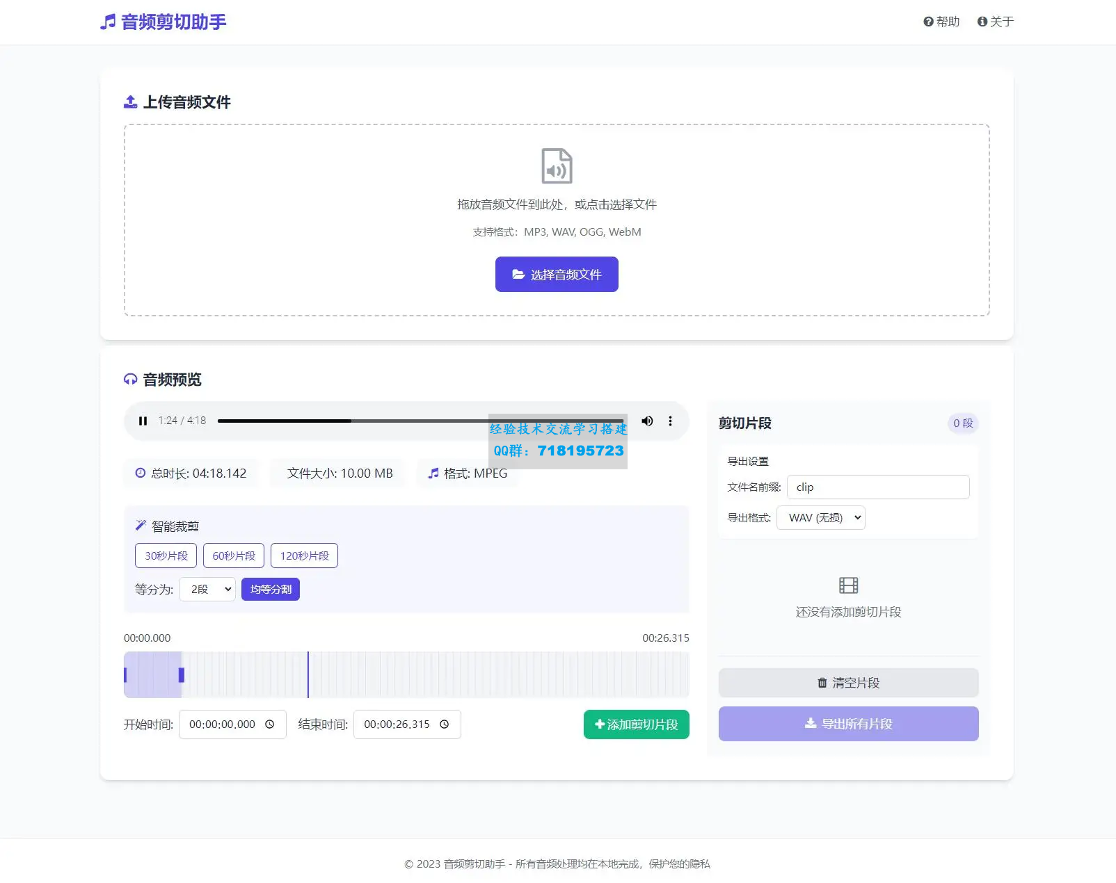 音频在线剪切助手网页版源码 所有音频处理均在本地完成