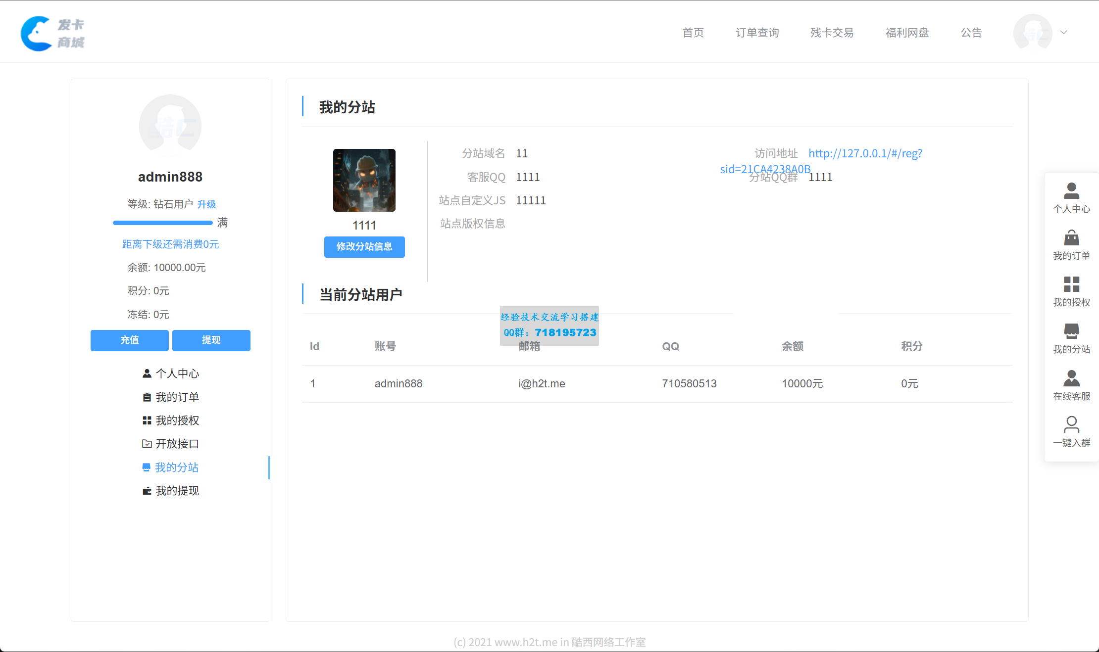 3.支持绑定二级域名作为分站域名,支持多级分销