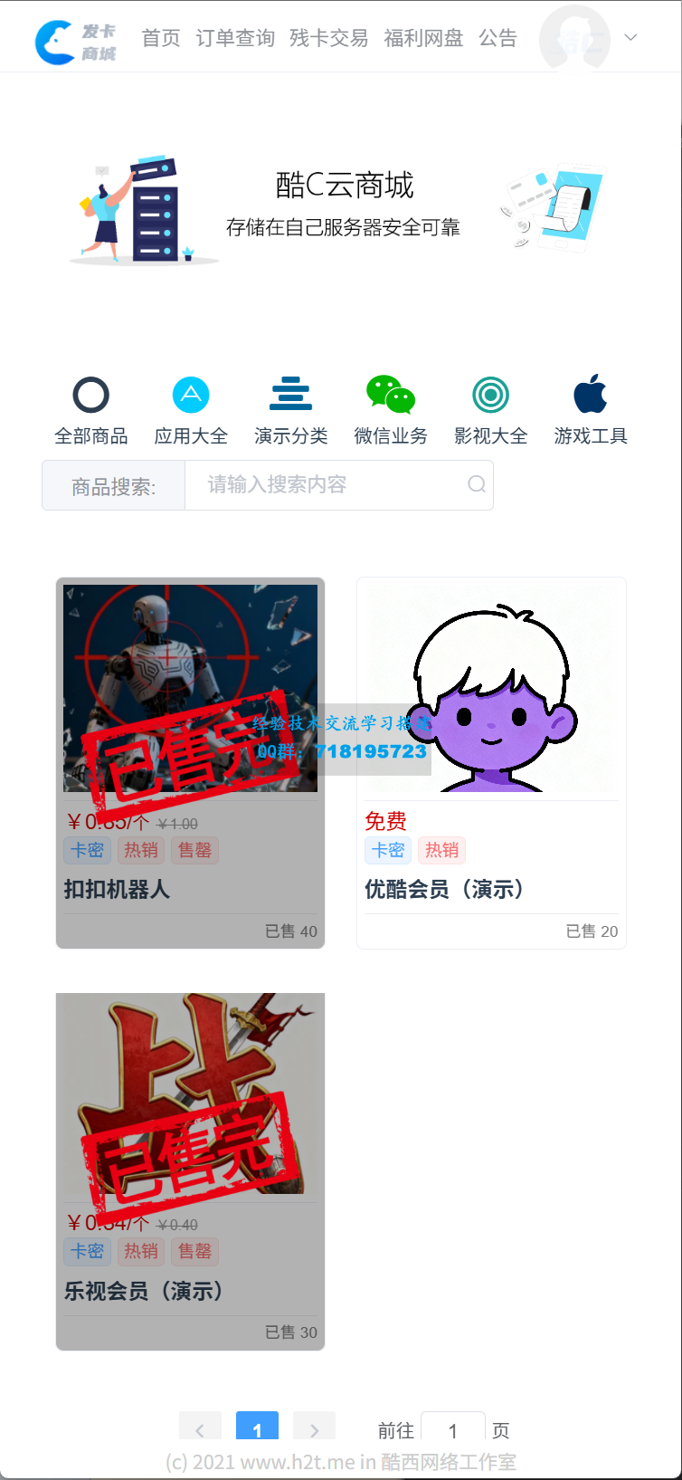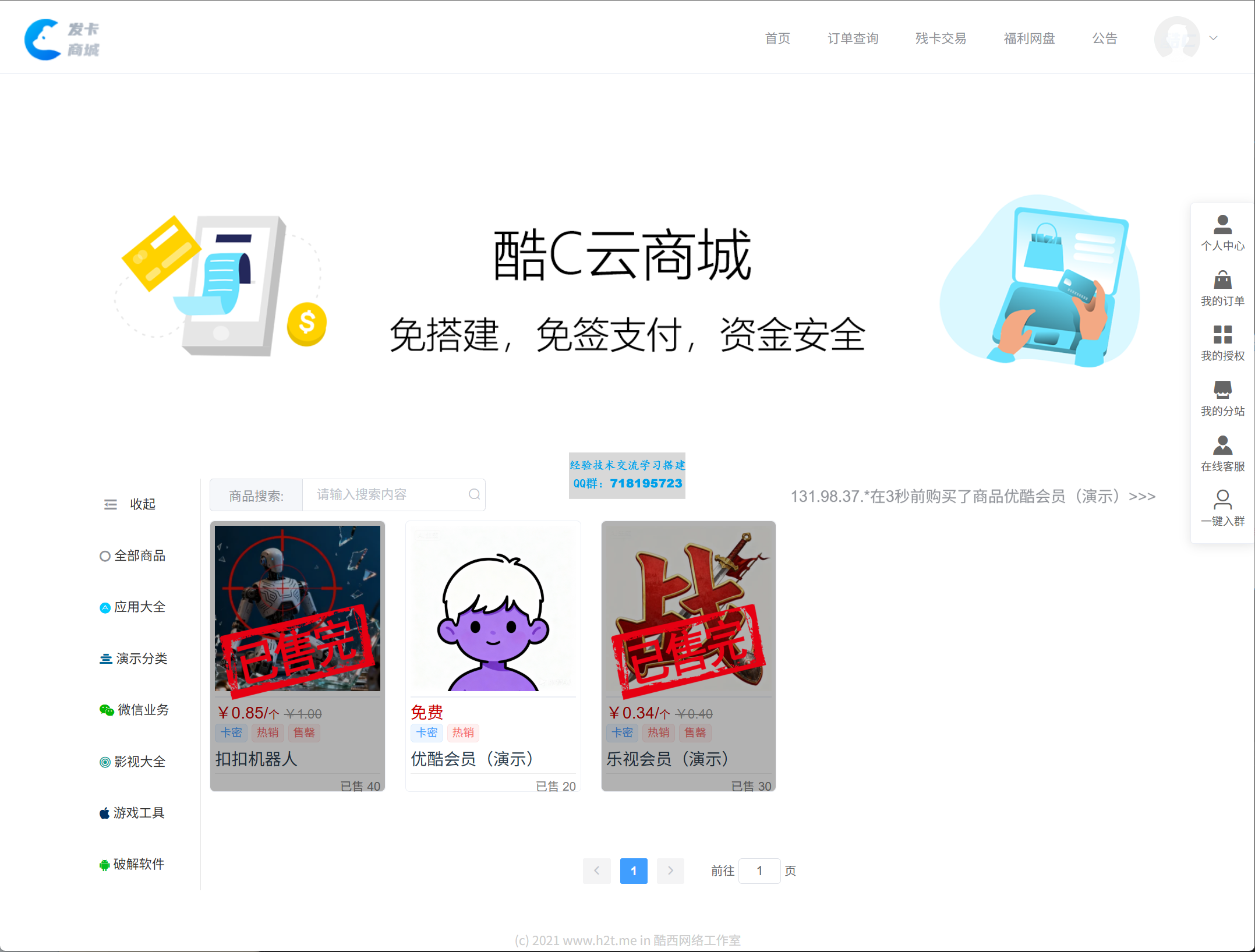 Cool-C 是一个功能完善的电商系统前端项目,采用 Vue.js + Element UI 构建,支持商品展示、在线购买、用户管理、残卡交易、网盘服务等多种功能。