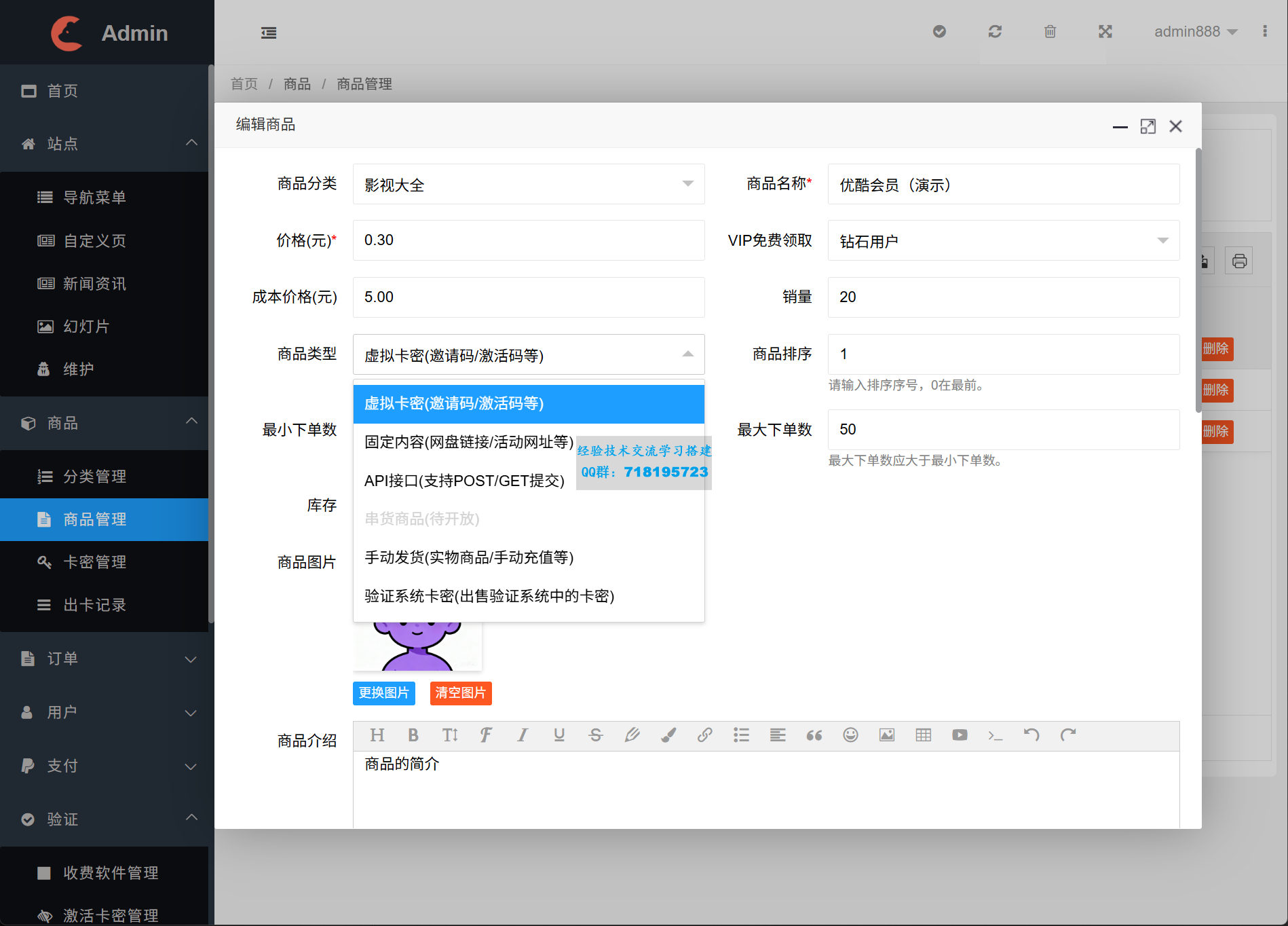 6.卡密管理工具,活动系统,折扣系统,限量免费领等