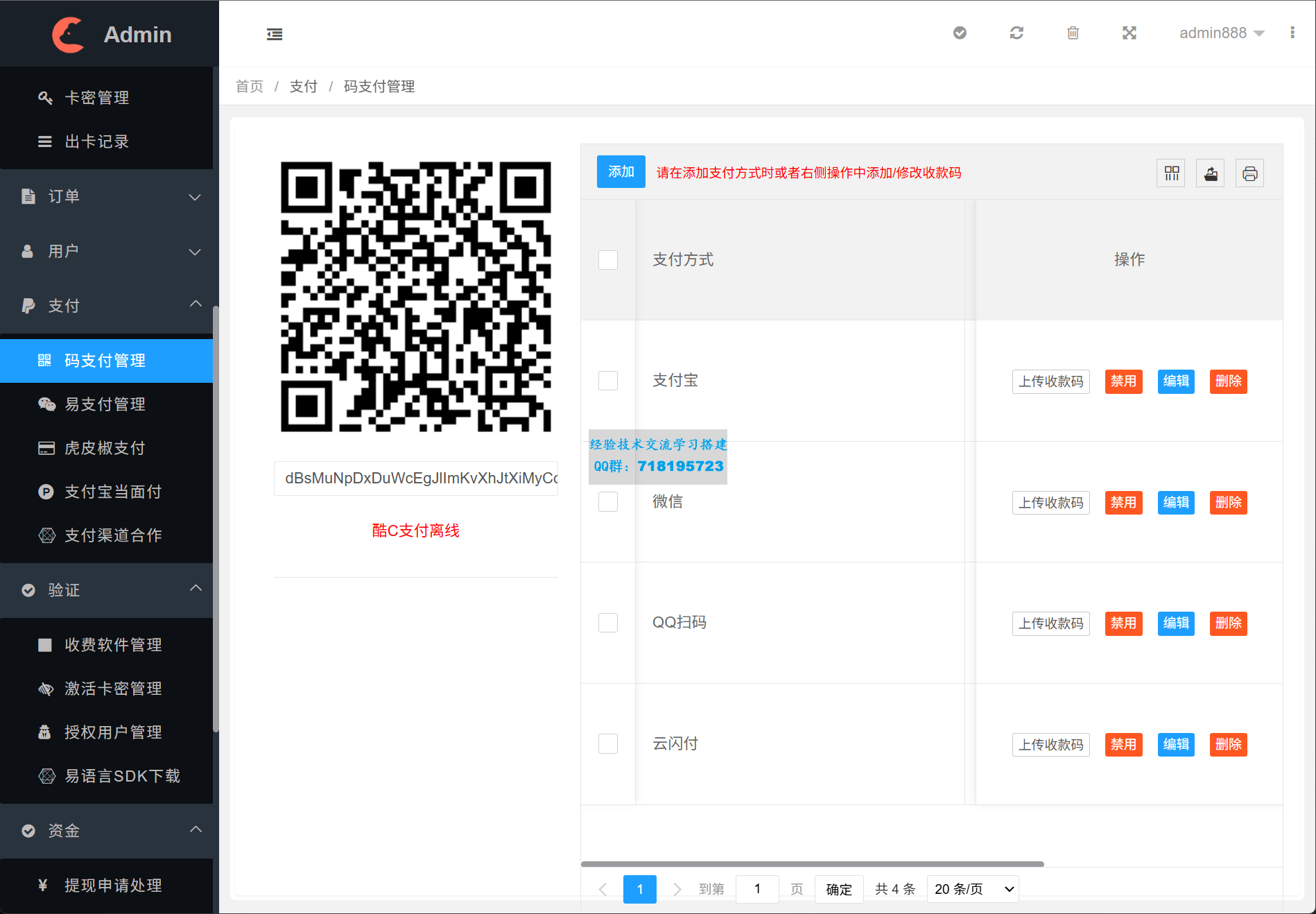 5.支持众多支付渠道 支付宝当面付 码支付(内置)易支付