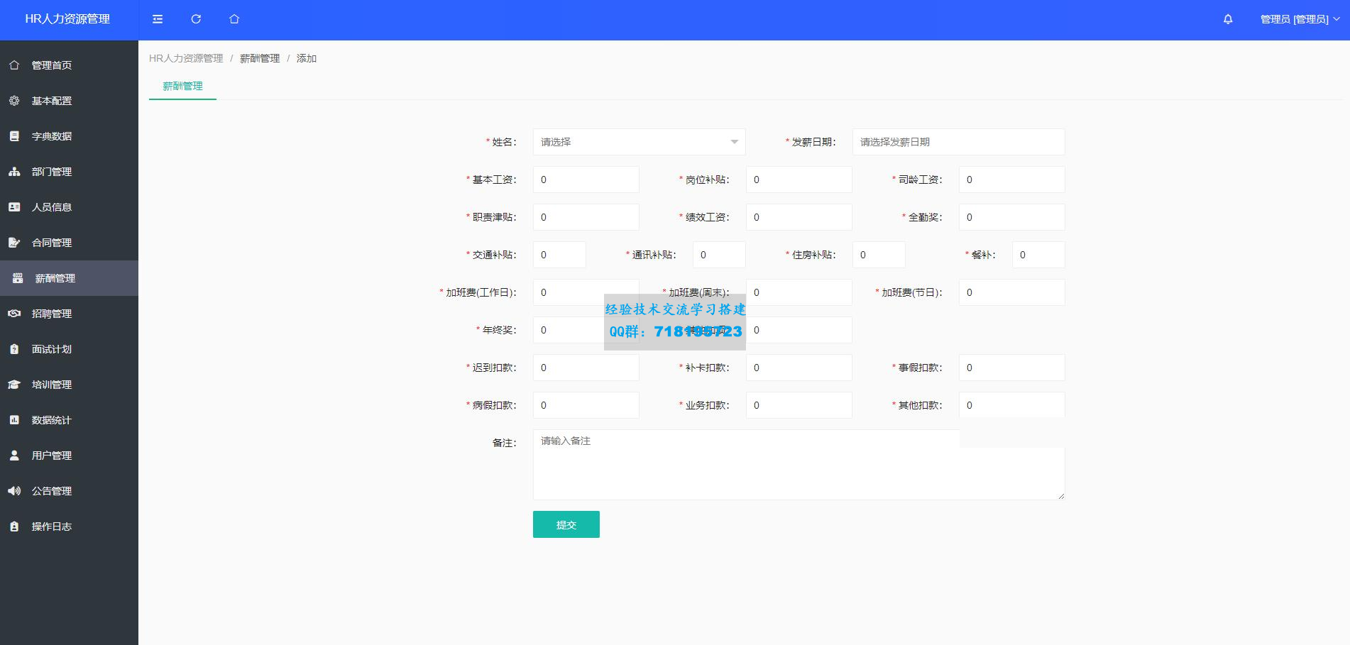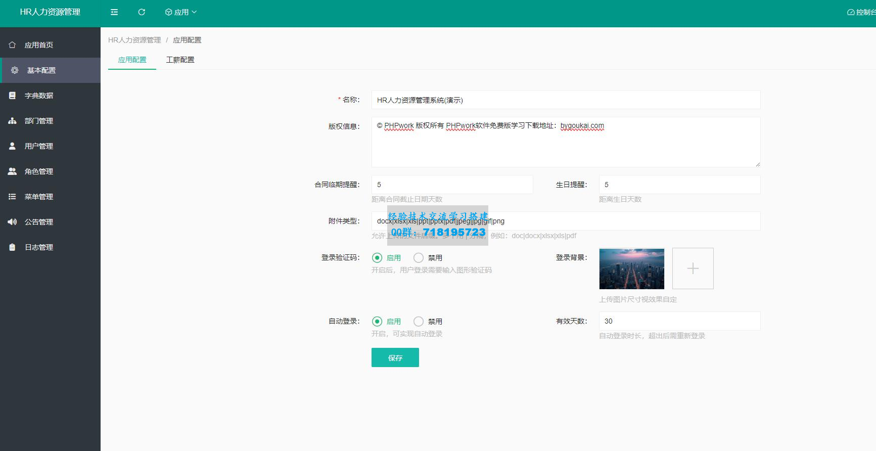 非常全面的一款HR人力资源系统,后台可以管理合同、薪资、员工、部门、招聘、面试、培训、数据统计等等