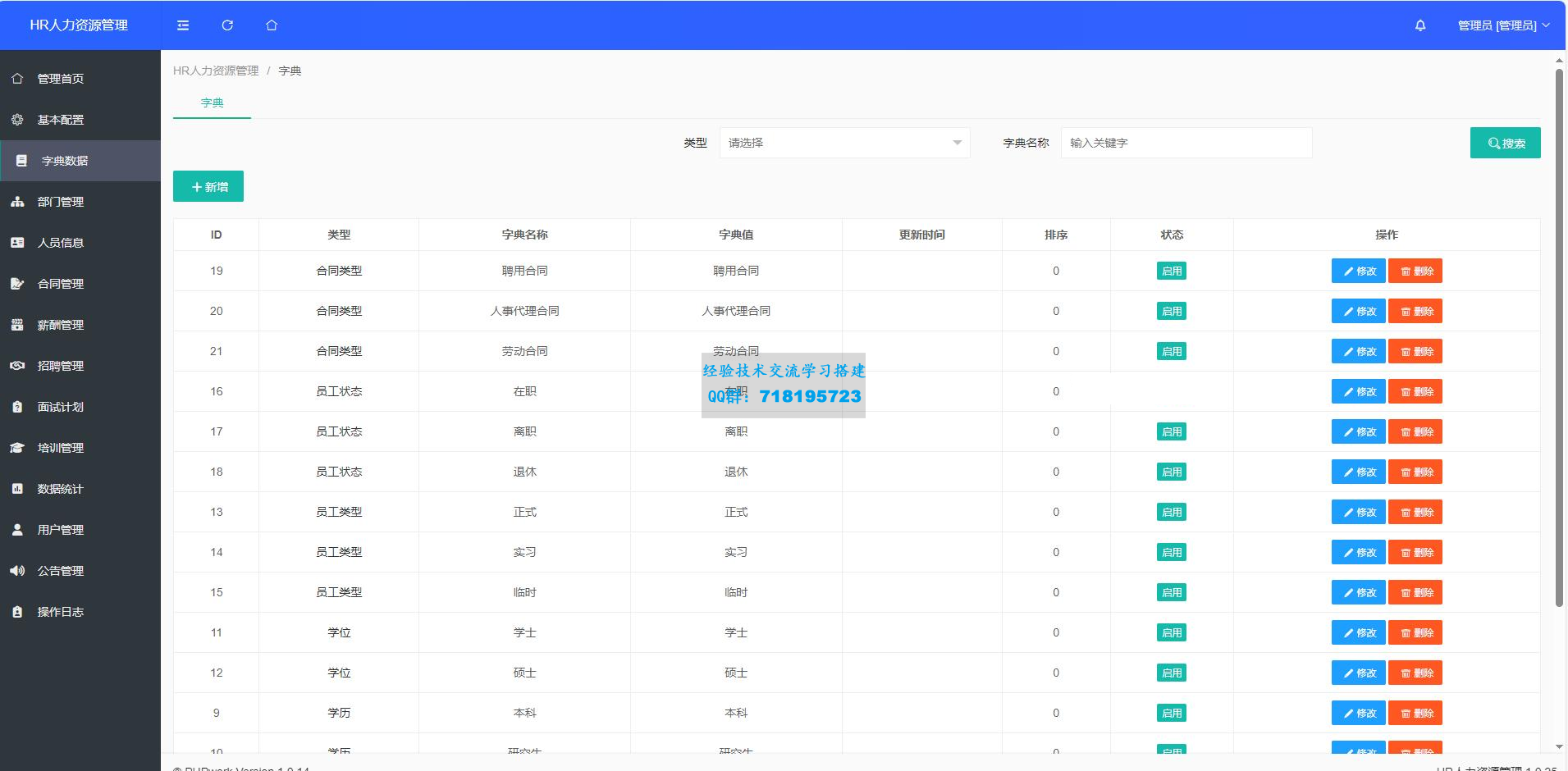 HR人力资源管理系统网站源码-员工管理系统非常全面的一款HR人力资源系统,后台可以管理合同、薪资、员工、部门、招聘、面试、培训、数据统计等等为了保护作者的系统不被泛滥,我只留了免费的版本给大家免费学习使用功能:人员管理、合同管理、工资......